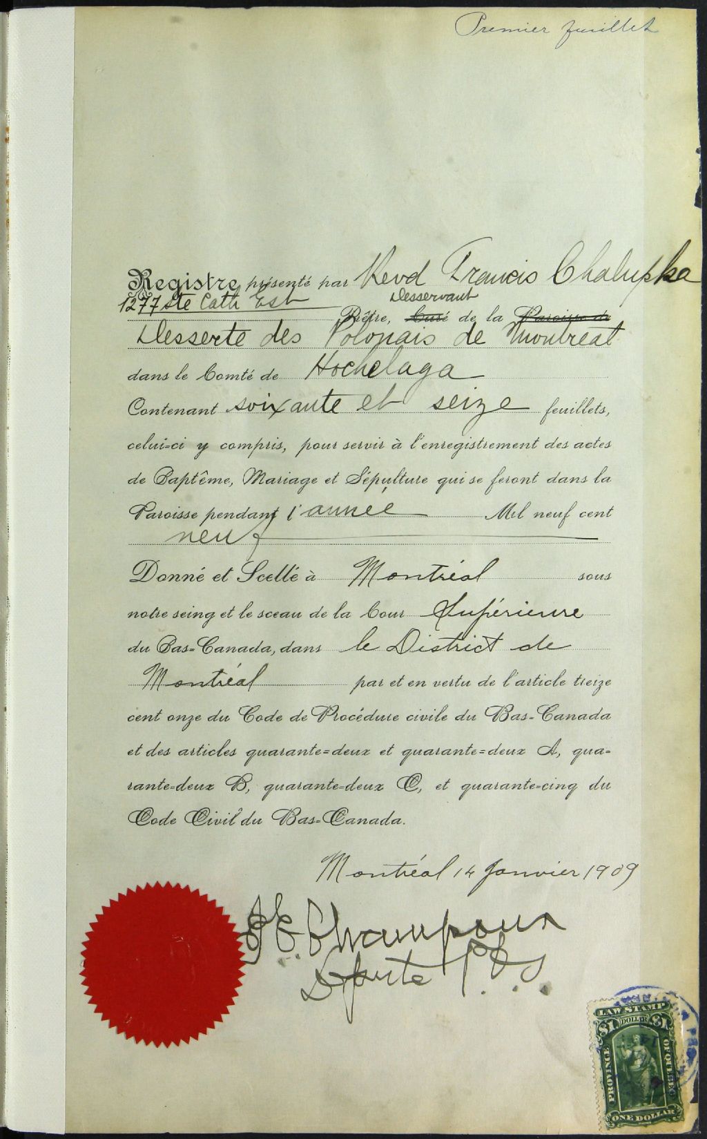 Saint Mary of Czestochowa, 1909-1921, Archives nationales à Montréal, Fonds Cour supérieure. District judiciaire de Montréal. État civil, (06M,CE601,S285).