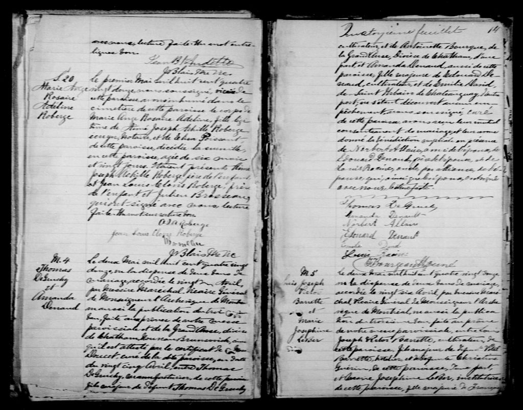 Notre-Dame-de-la-Prairie-de-la-Madeleine, 1670-1922, Archives nationales à Montréal, Fonds Cour supérieure. District judiciaire de Montréal. État civil, (06M,CE601,S3).