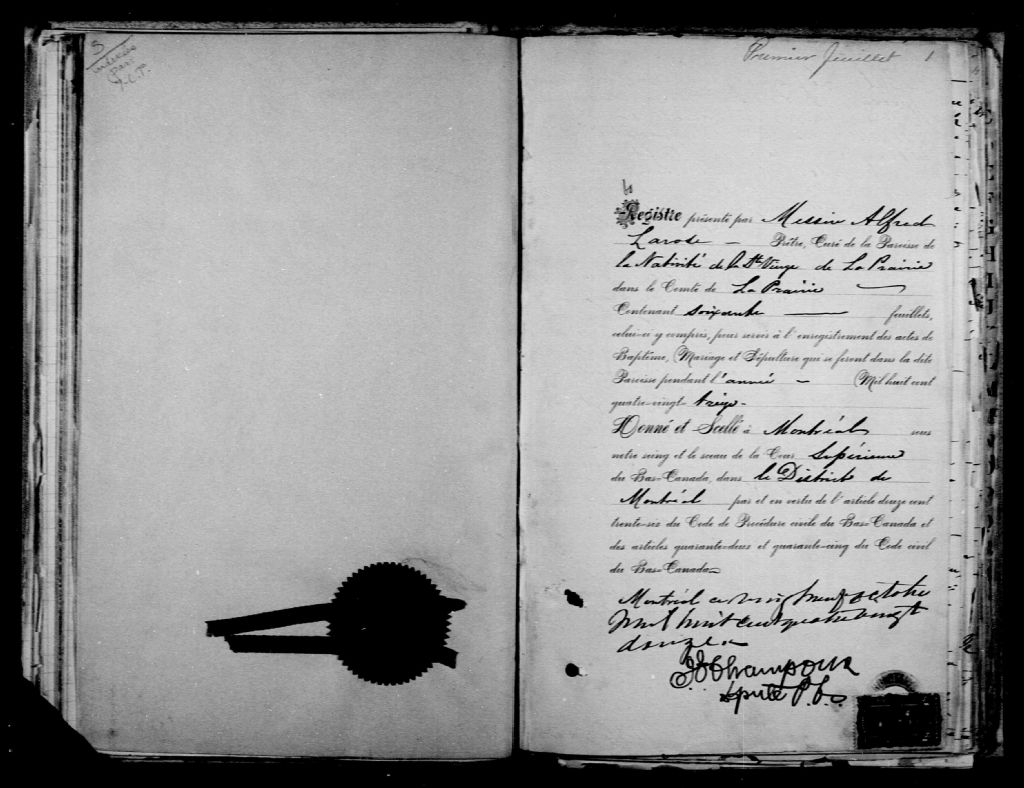 Notre-Dame-de-la-Prairie-de-la-Madeleine, 1670-1922, Archives nationales à Montréal, Fonds Cour supérieure. District judiciaire de Montréal. État civil, (06M,CE601,S3).