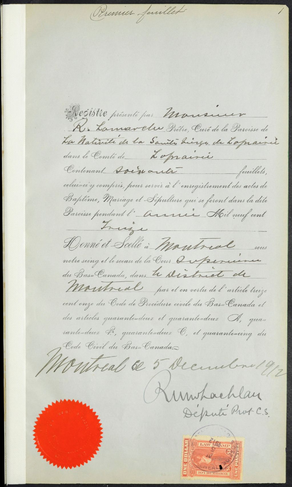 Notre-Dame-de-la-Prairie-de-la-Madeleine, 1670-1922, Archives nationales à Montréal, Fonds Cour supérieure. District judiciaire de Montréal. État civil, (06M,CE601,S3).