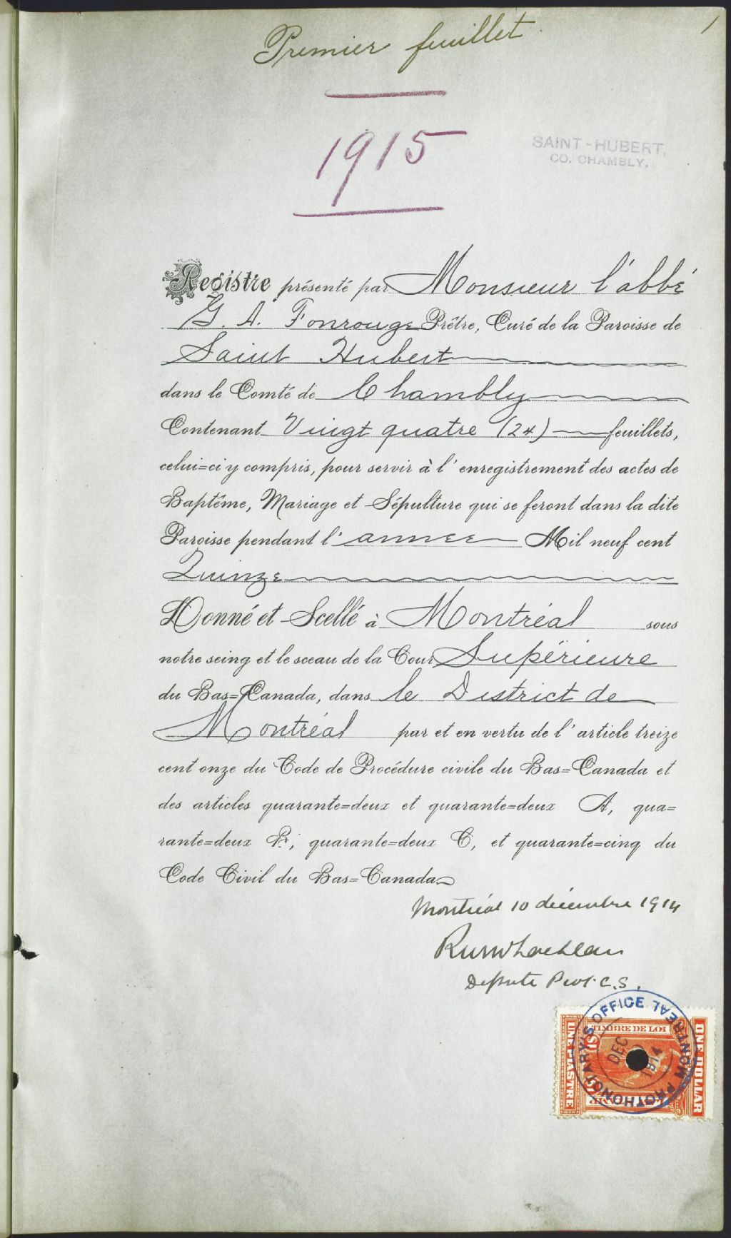 Saint-Hubert, 1862-1922, Archives nationales à Montréal, Fonds Cour supérieure. District judiciaire de Montréal. État civil, (06M,CE601,S30).