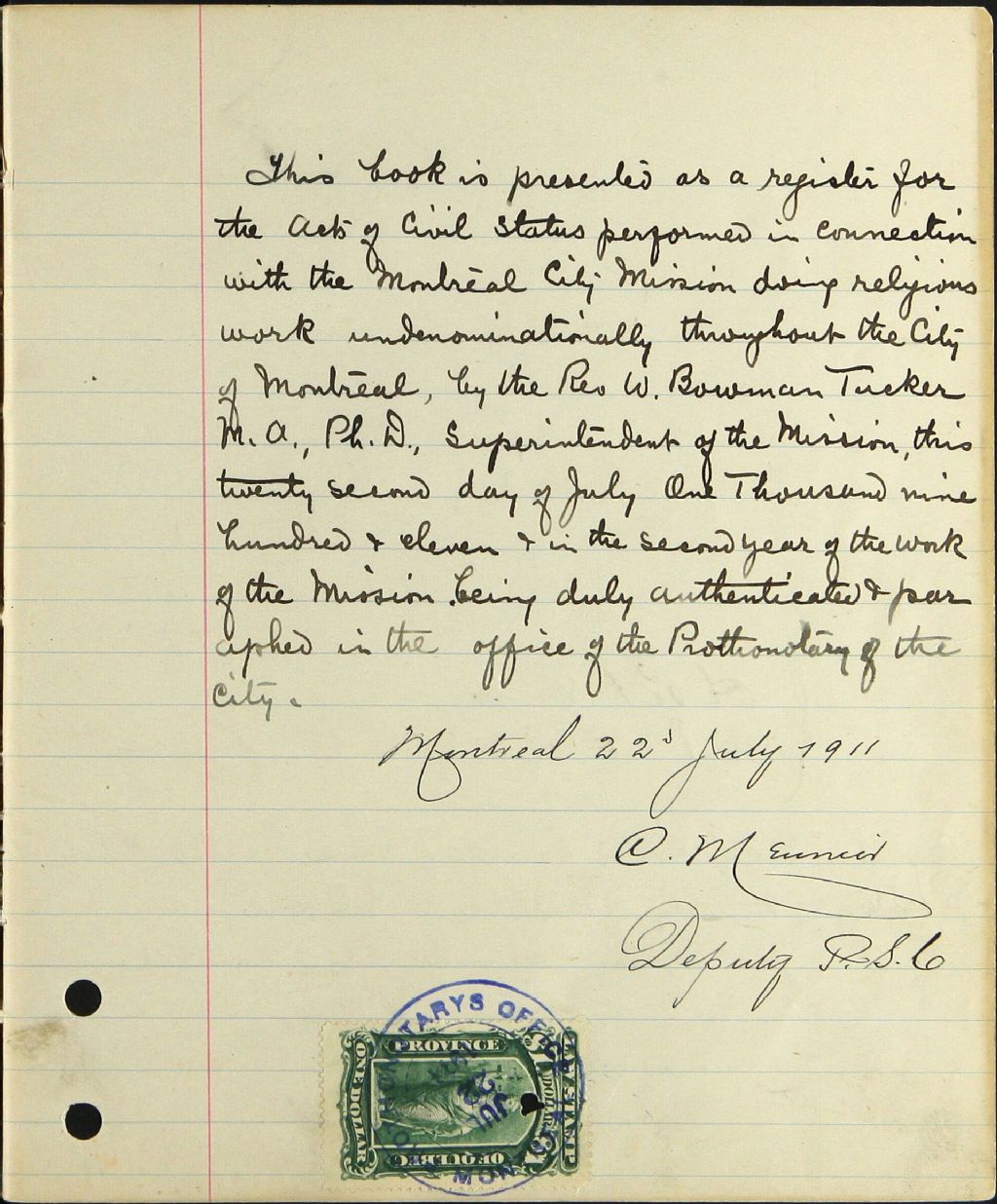 Montreal City Mission, 1911-1912, 1917-1921, Archives nationales à Montréal, Fonds Cour supérieure. District judiciaire de Montréal. État civil, (06M,CE601,S312).