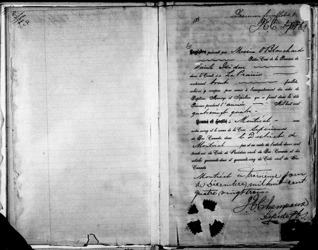 Saint-Isidore-de-Laprairie, 1833-1922, Archives nationales à Montréal, Fonds Cour supérieure. District judiciaire de Montréal. État civil, (06M,CE601,S32).