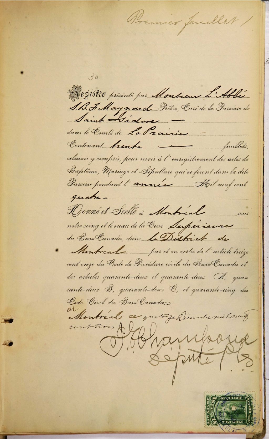 Saint-Isidore-de-Laprairie, 1833-1922, Archives nationales à Montréal, Fonds Cour supérieure. District judiciaire de Montréal. État civil, (06M,CE601,S32).