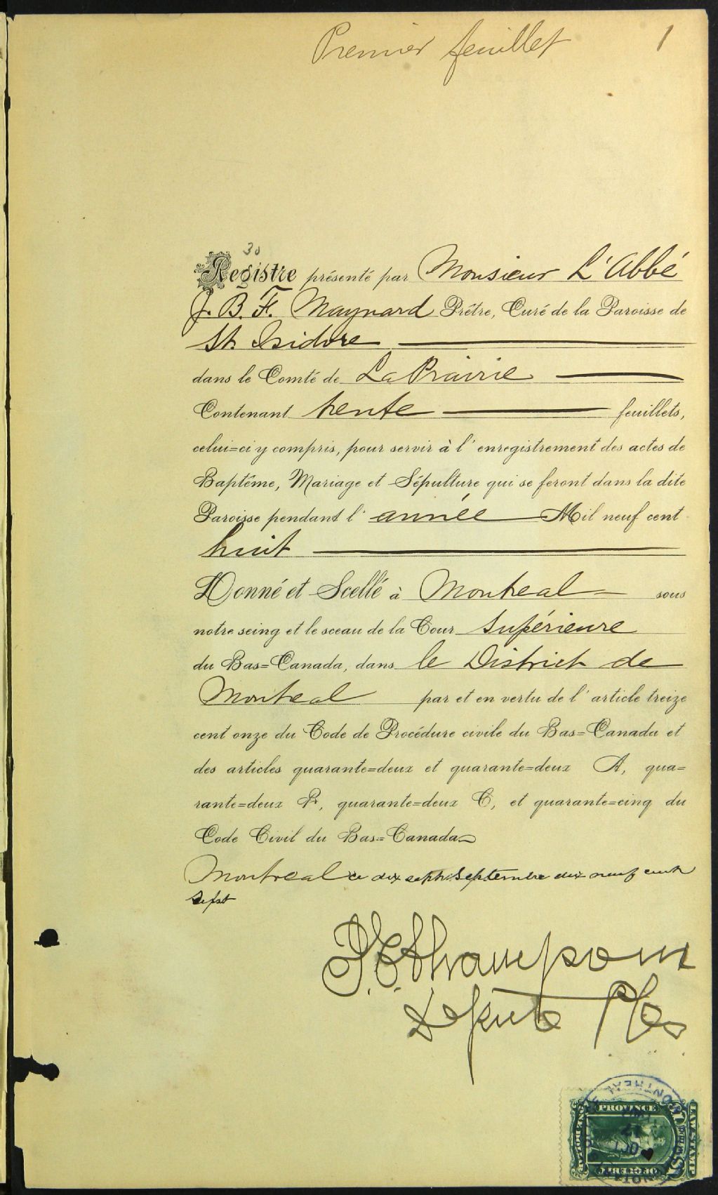 Saint-Isidore-de-Laprairie, 1833-1922, Archives nationales à Montréal, Fonds Cour supérieure. District judiciaire de Montréal. État civil, (06M,CE601,S32).