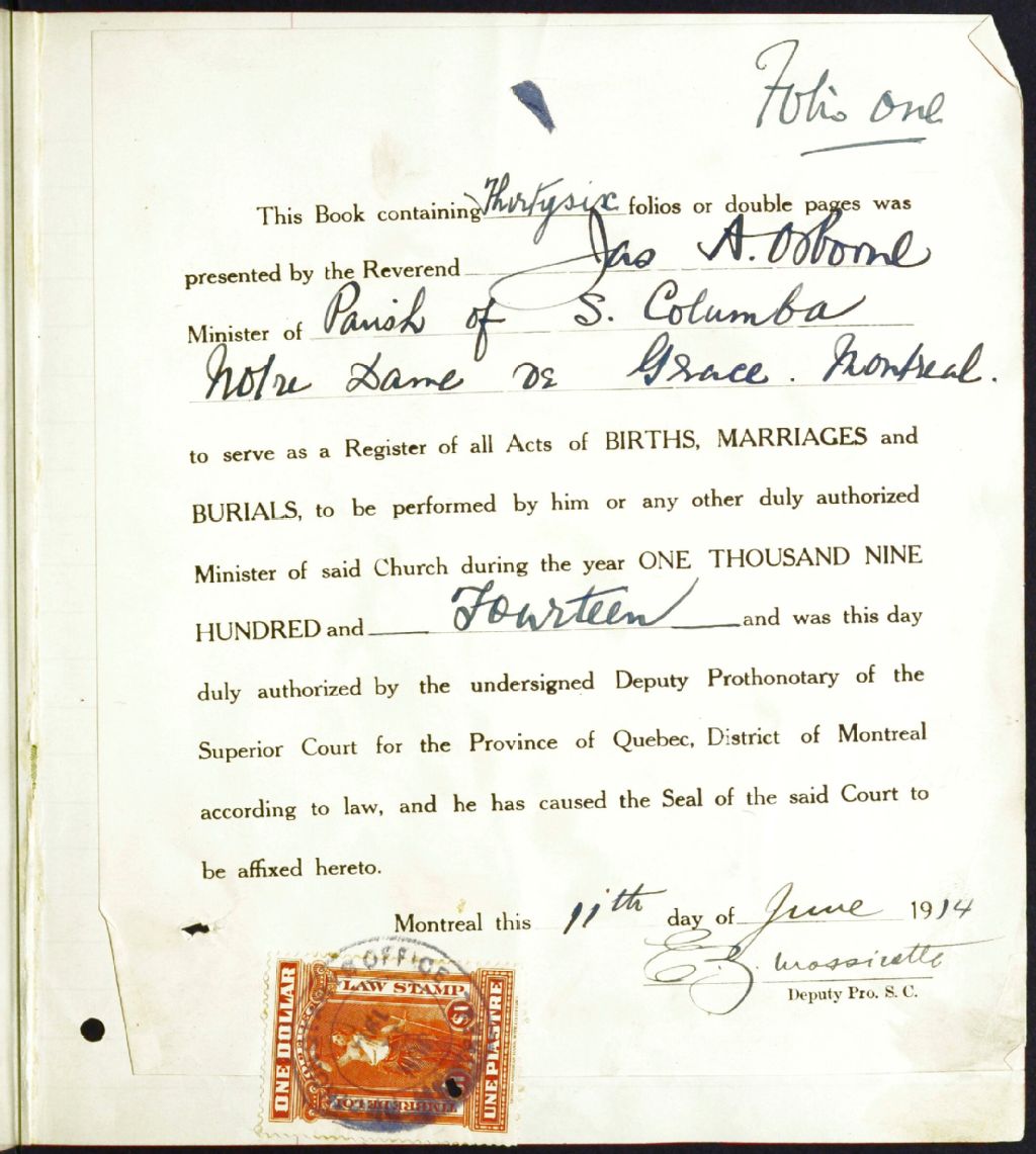 St. Columba's Anglican Church, 1914-1922, Archives nationales à Montréal, Fonds Cour supérieure. District judiciaire de Montréal. État civil, (06M,CE601,S345).