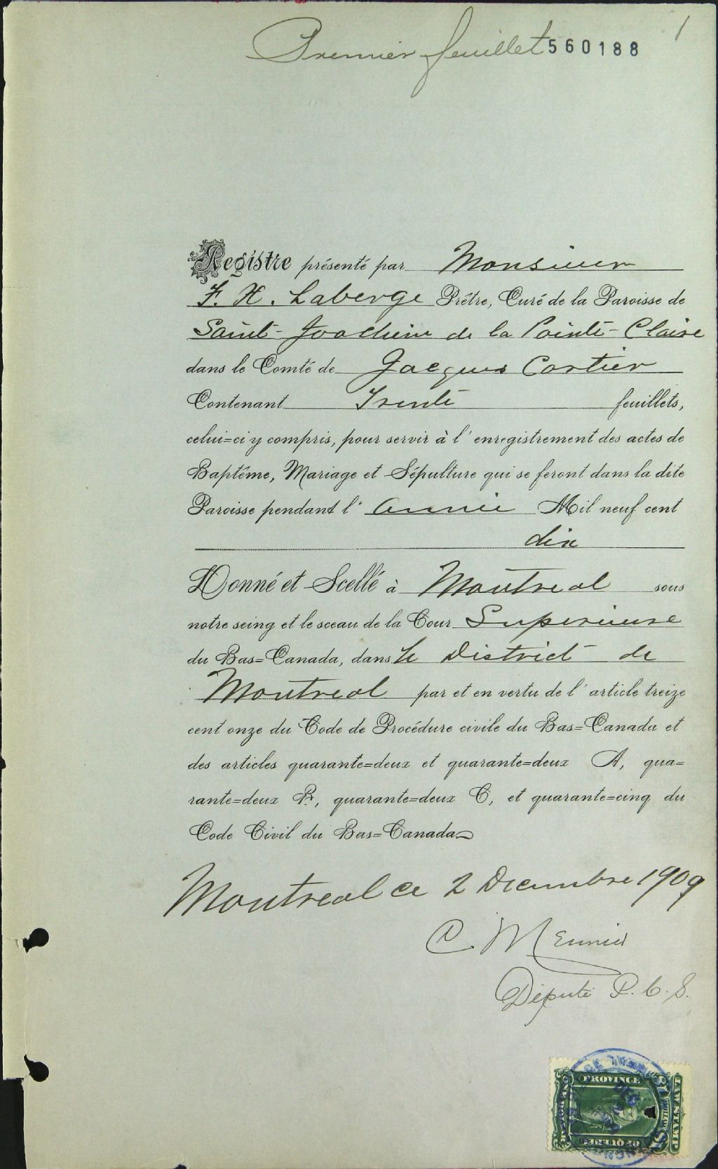 Saint-Joachim-de-la-Pointe-Claire, 1713-1922, Archives nationales à Montréal, Fonds Cour supérieure. District judiciaire de Montréal. État civil, (06M,CE601,S37).