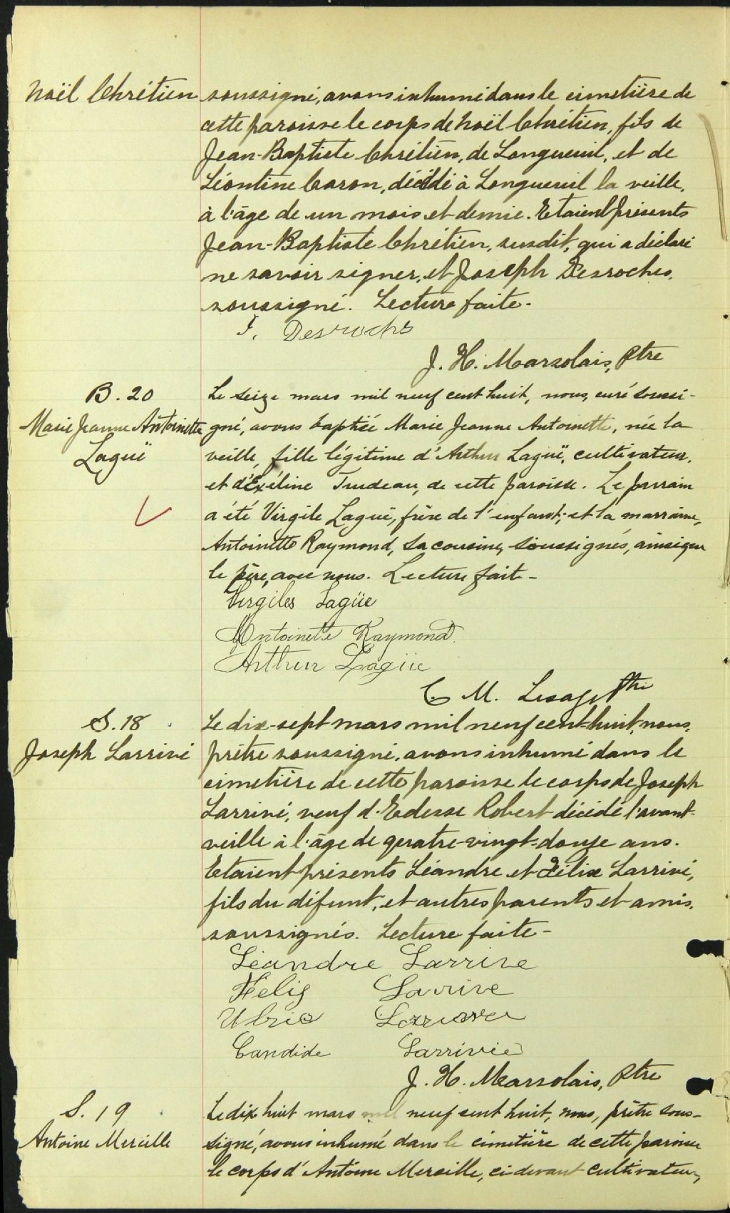 Saint-Joseph-de-Chambly, 1706-1922, Archives nationales à Montréal, Fonds Cour supérieure. District judiciaire de Montréal. État civil, (06M,CE601,S39).