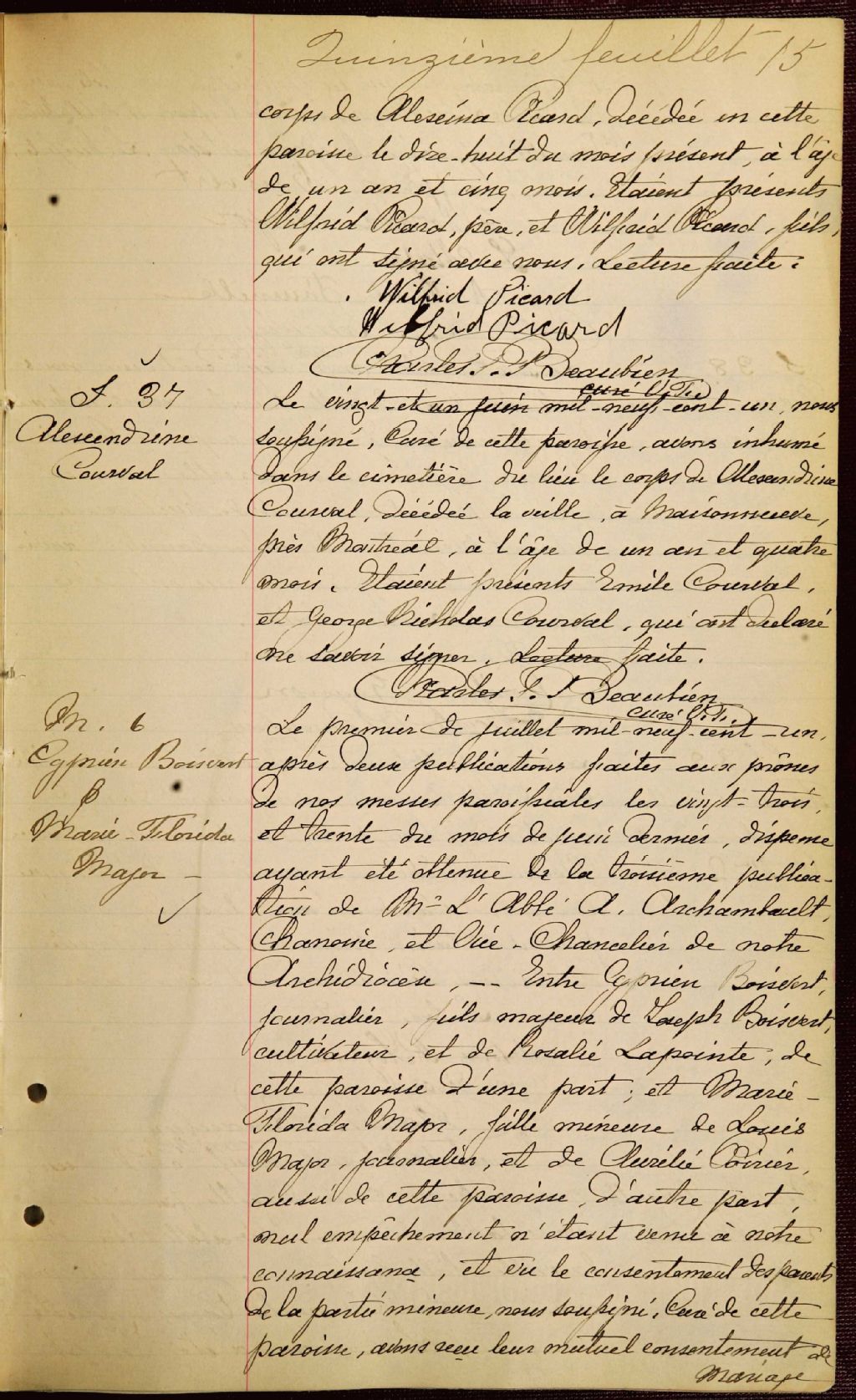 La Visitation-du-Sault-au-Récollet, 1736-1922, Archives nationales à Montréal, Fonds Cour supérieure. District judiciaire de Montréal. État civil, (06M,CE601,S4).