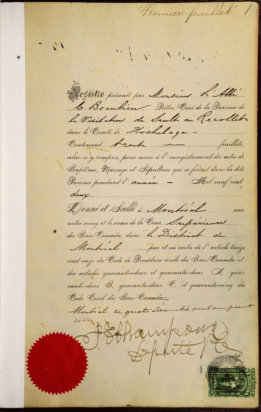 La Visitation-du-Sault-au-Récollet, 1736-1922, Archives nationales à Montréal, Fonds Cour supérieure. District judiciaire de Montréal. État civil, (06M,CE601,S4).