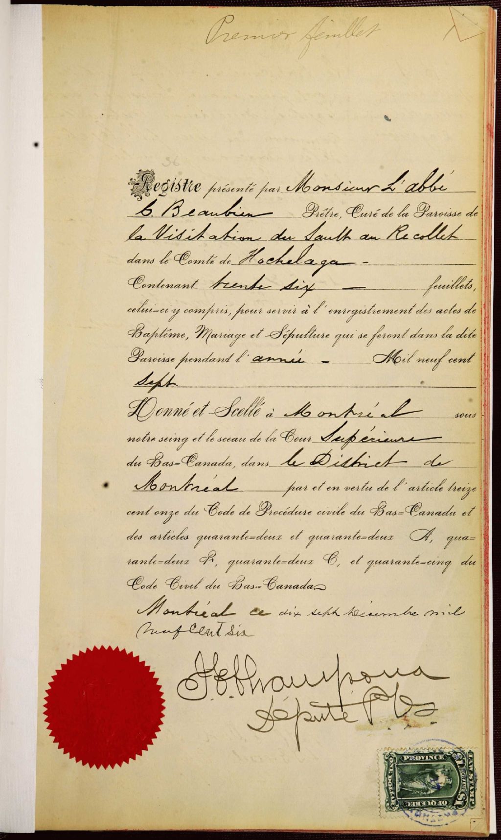 La Visitation-du-Sault-au-Récollet, 1736-1922, Archives nationales à Montréal, Fonds Cour supérieure. District judiciaire de Montréal. État civil, (06M,CE601,S4).