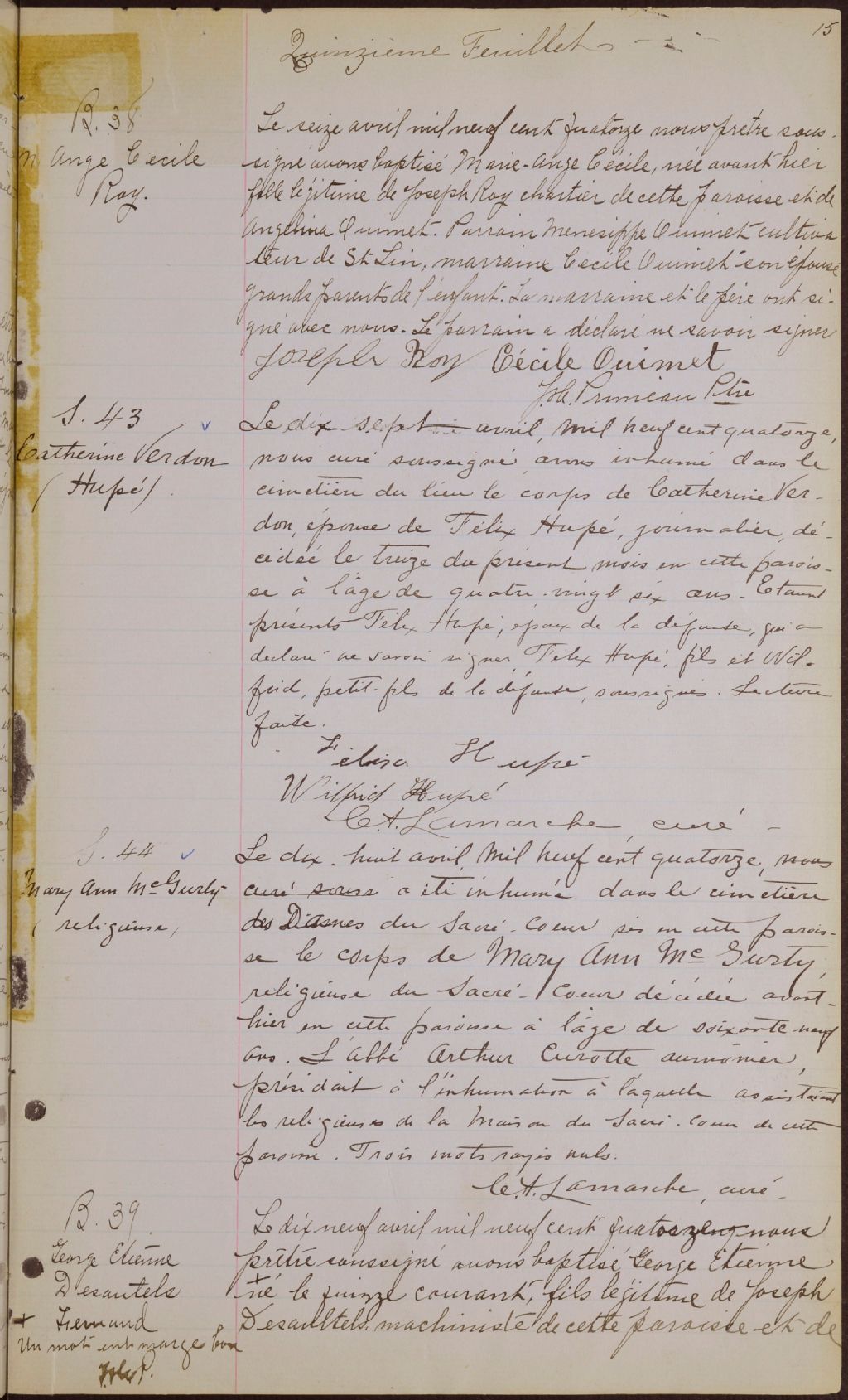 La Visitation-du-Sault-au-Récollet, 1736-1922, Archives nationales à Montréal, Fonds Cour supérieure. District judiciaire de Montréal. État civil, (06M,CE601,S4).