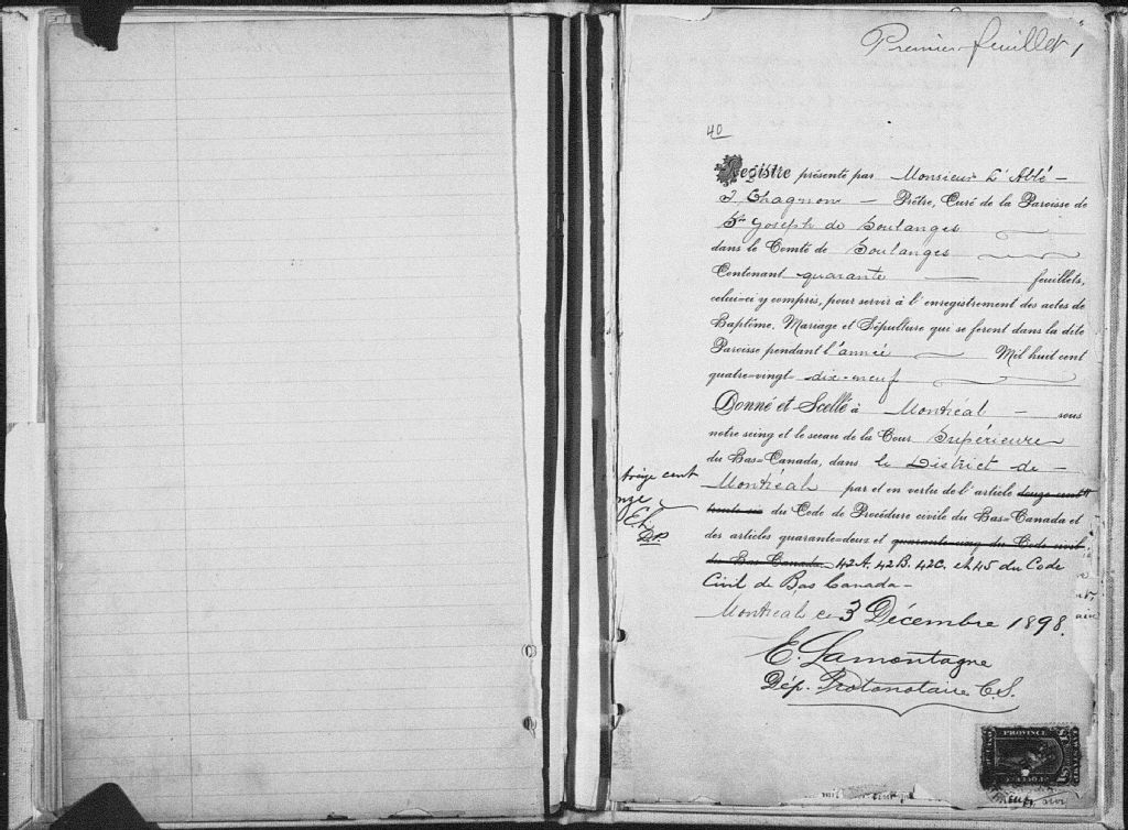 Saint-Joseph-de-Soulanges, 1752-1922, Archives nationales à Montréal, Fonds Cour supérieure. District judiciaire de Montréal. État civil, (06M,CE601,S41).