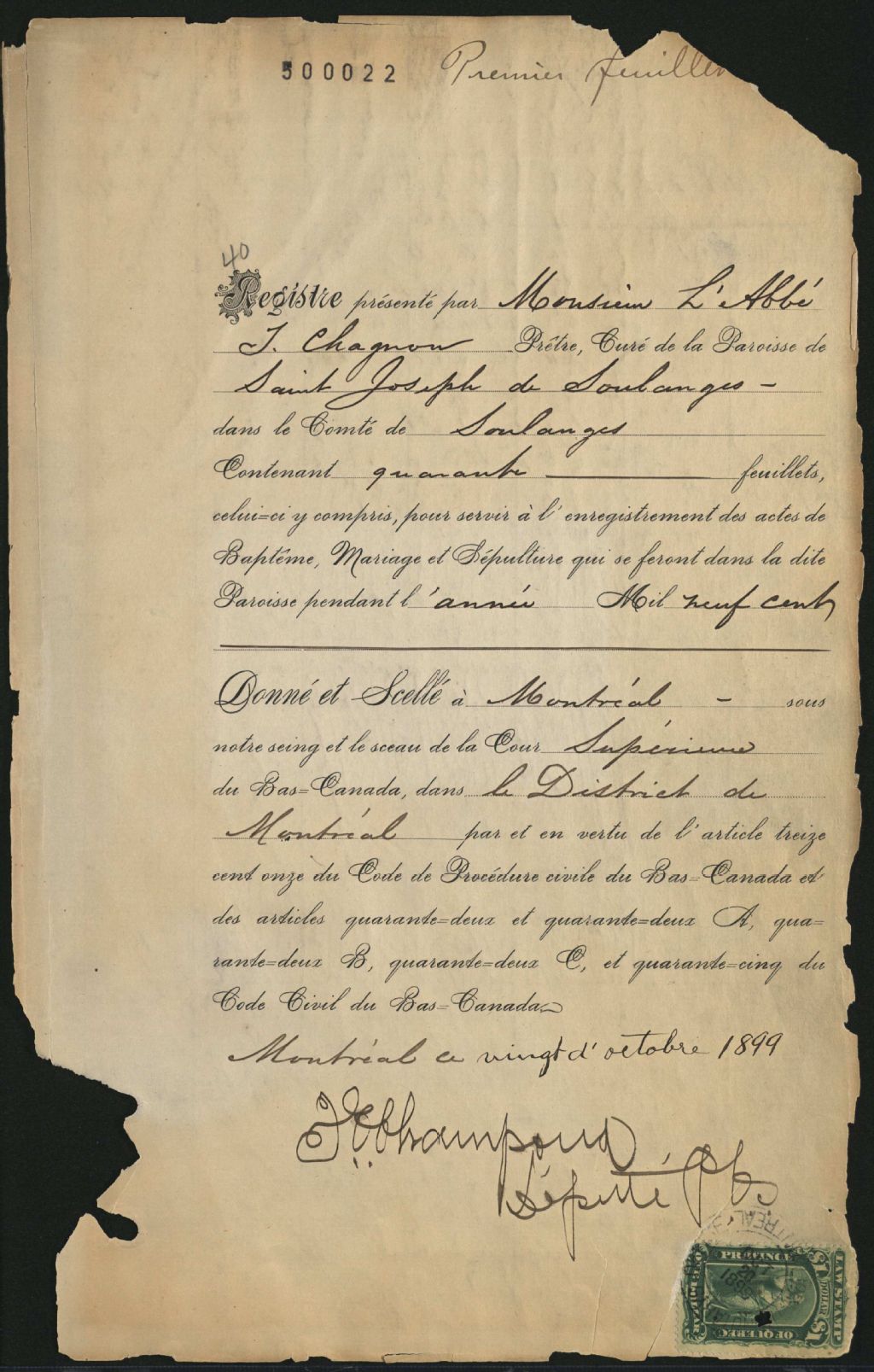 Saint-Joseph-de-Soulanges, 1752-1922, Archives nationales à Montréal, Fonds Cour supérieure. District judiciaire de Montréal. État civil, (06M,CE601,S41).