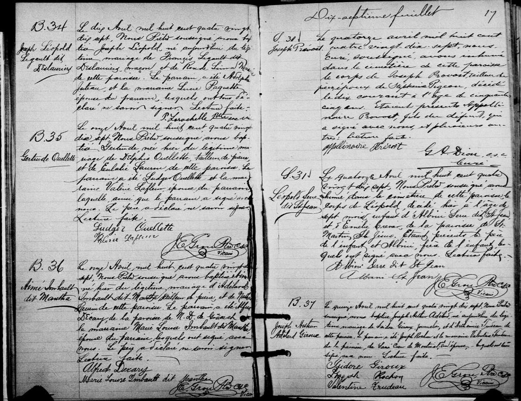 Saint-Laurent, 1720-1923, Archives nationales à Montréal, Fonds Cour supérieure. District judiciaire de Montréal. État civil, (06M,CE601,S44).