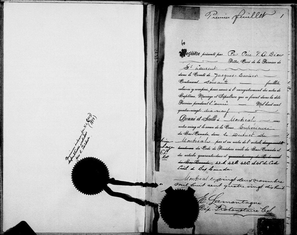 Saint-Laurent, 1720-1923, Archives nationales à Montréal, Fonds Cour supérieure. District judiciaire de Montréal. État civil, (06M,CE601,S44).