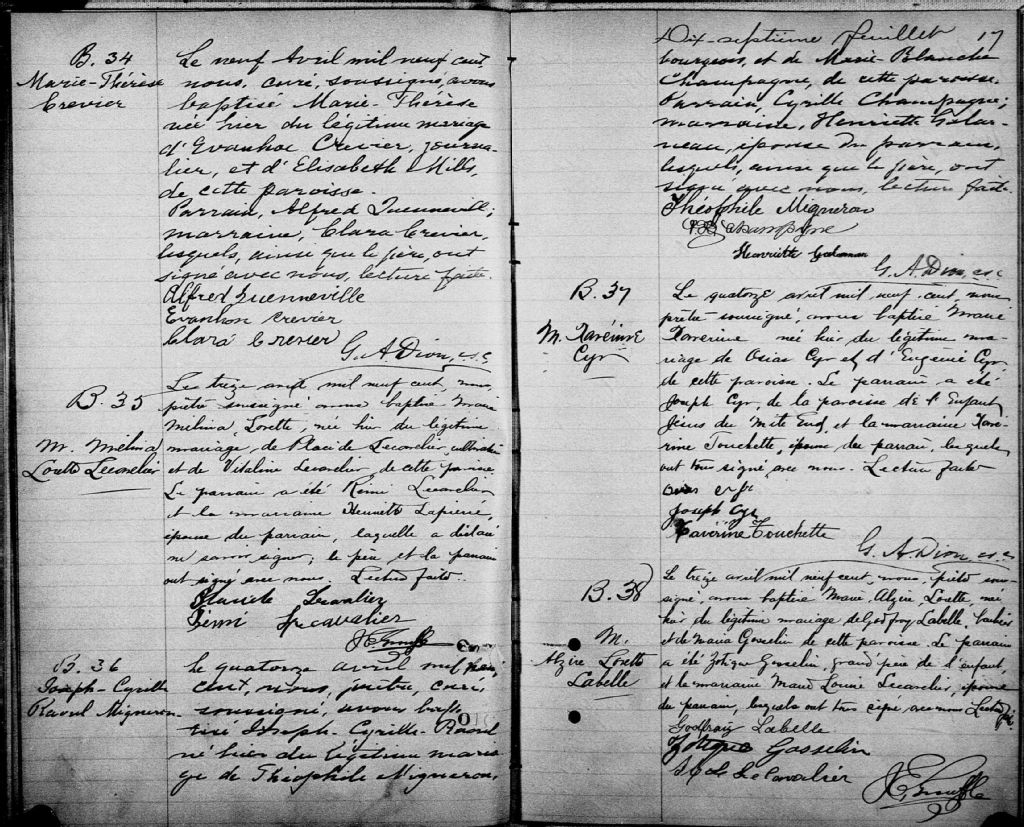 Saint-Laurent, 1720-1923, Archives nationales à Montréal, Fonds Cour supérieure. District judiciaire de Montréal. État civil, (06M,CE601,S44).