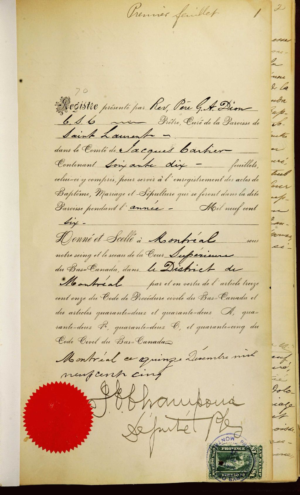 Saint-Laurent, 1720-1923, Archives nationales à Montréal, Fonds Cour supérieure. District judiciaire de Montréal. État civil, (06M,CE601,S44).