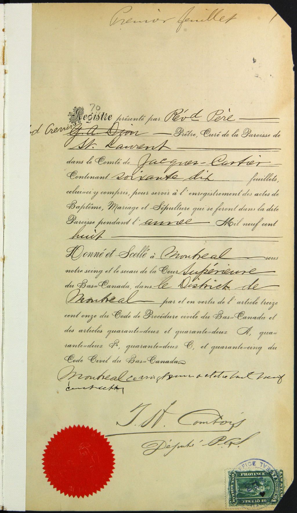 Saint-Laurent, 1720-1923, Archives nationales à Montréal, Fonds Cour supérieure. District judiciaire de Montréal. État civil, (06M,CE601,S44).
