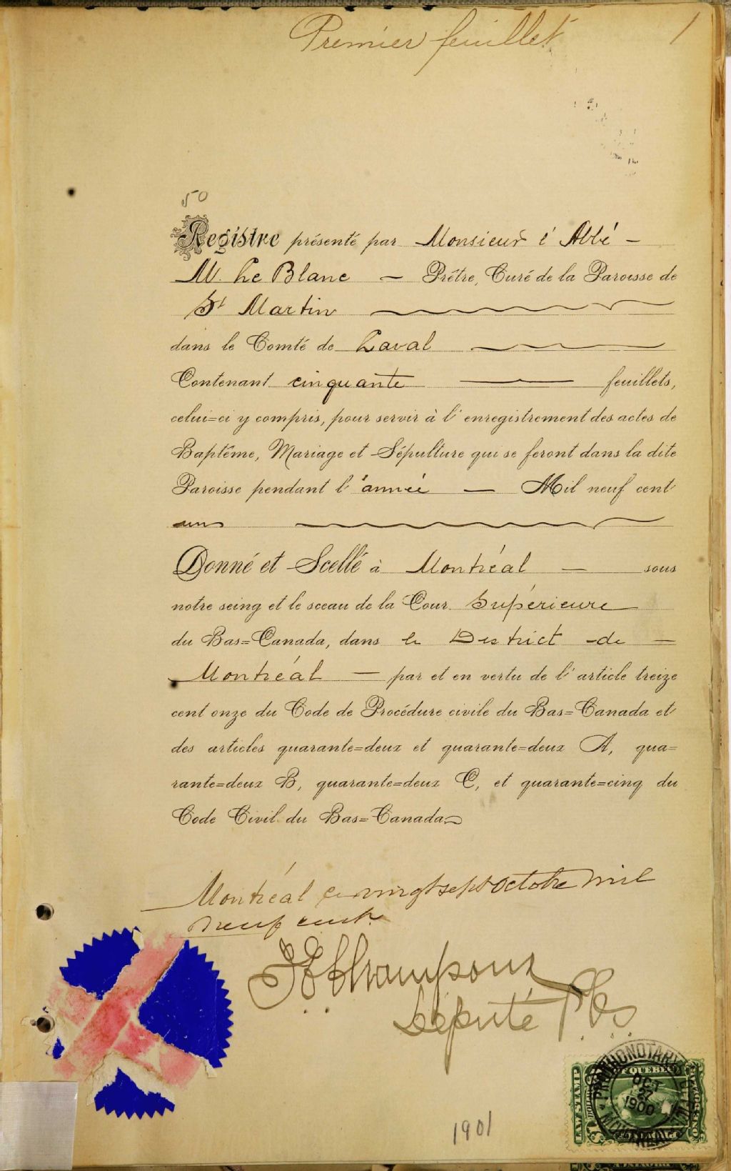 Saint-Martin, 1774-1922, Archives nationales à Montréal, Fonds Cour supérieure. District judiciaire de Montréal. État civil, (06M,CE601,S48).