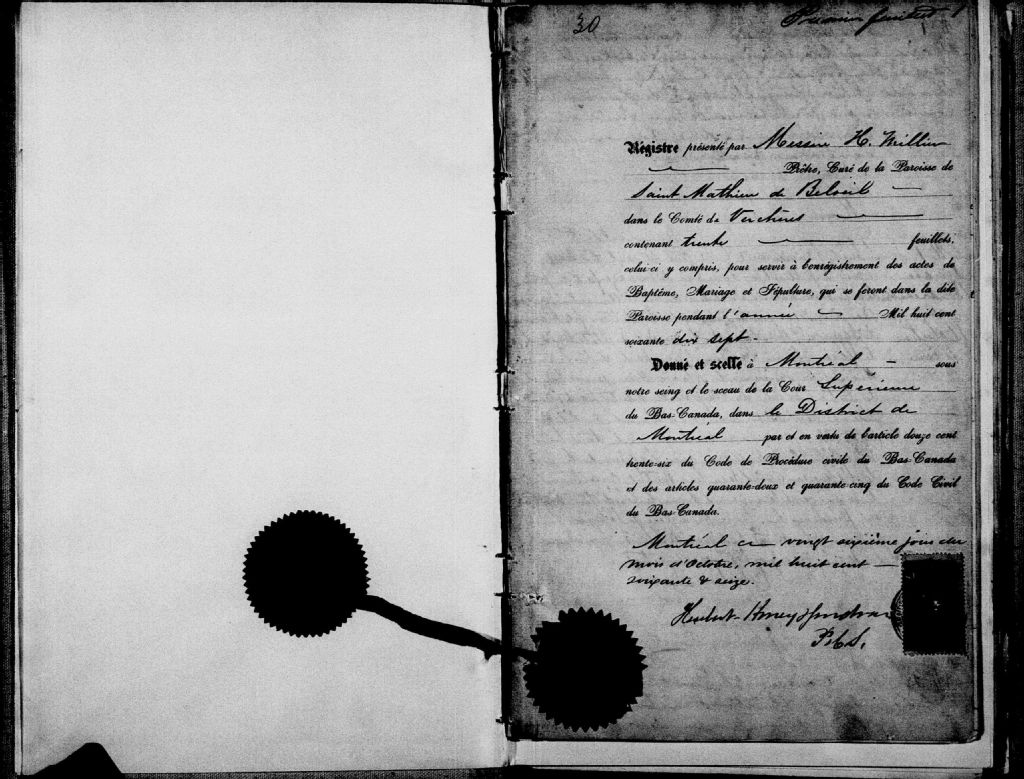 Saint-Mathieu-de-Beloeil, 1772-1922, Archives nationales à Montréal, Fonds Cour supérieure. District judiciaire de Montréal. État civil, (06M,CE601,S49).