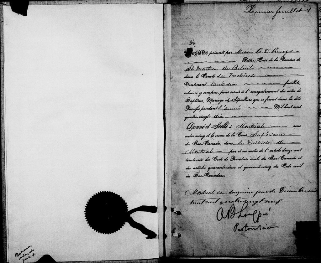 Saint-Mathieu-de-Beloeil, 1772-1922, Archives nationales à Montréal, Fonds Cour supérieure. District judiciaire de Montréal. État civil, (06M,CE601,S49).