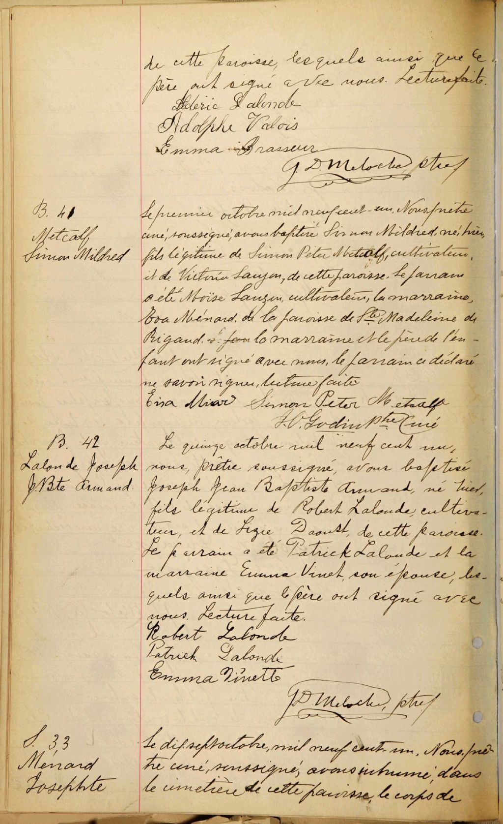 Saint-Michel-de-Vaudreuil, 1773-1922, Archives nationales à Montréal, Fonds Cour supérieure. District judiciaire de Montréal. État civil, (06M,CE601,S50).