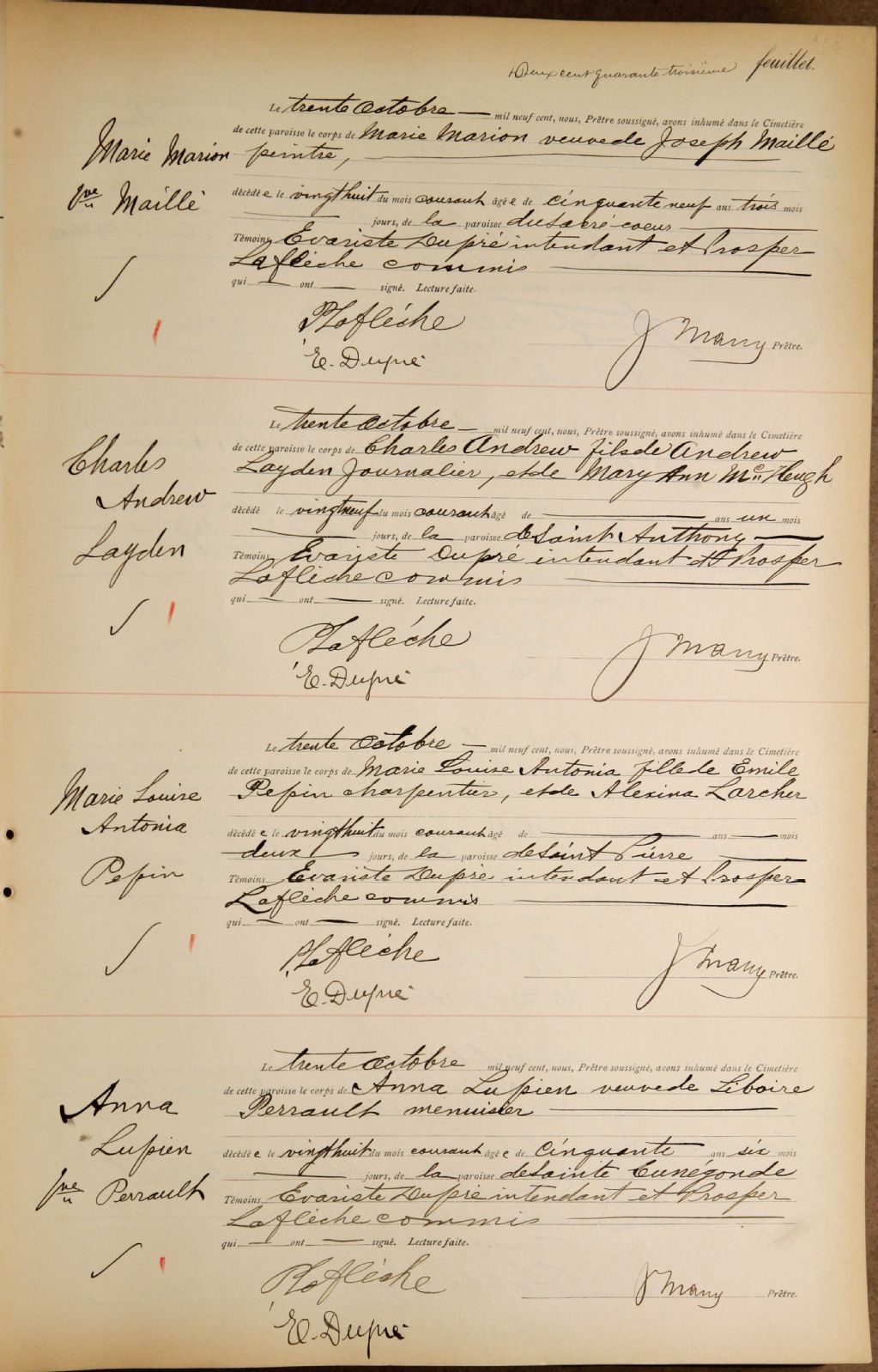 Notre-Dame-de-Montréal, 1642-1921, Archives nationales à Montréal, Fonds Cour supérieure. District judiciaire de Montréal. État civil, (06M,CE601,S51).