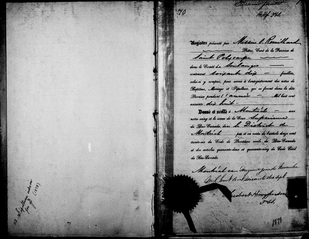 Saint-Polycarpe, 1819-1922, Archives nationales à Montréal, Fonds Cour supérieure. District judiciaire de Montréal. État civil, (06M,CE601,S55).