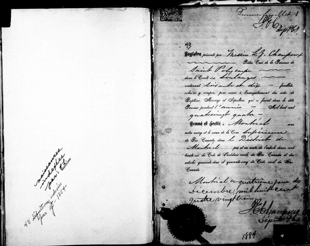 Saint-Polycarpe, 1819-1922, Archives nationales à Montréal, Fonds Cour supérieure. District judiciaire de Montréal. État civil, (06M,CE601,S55).