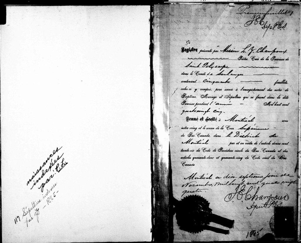 Saint-Polycarpe, 1819-1922, Archives nationales à Montréal, Fonds Cour supérieure. District judiciaire de Montréal. État civil, (06M,CE601,S55).