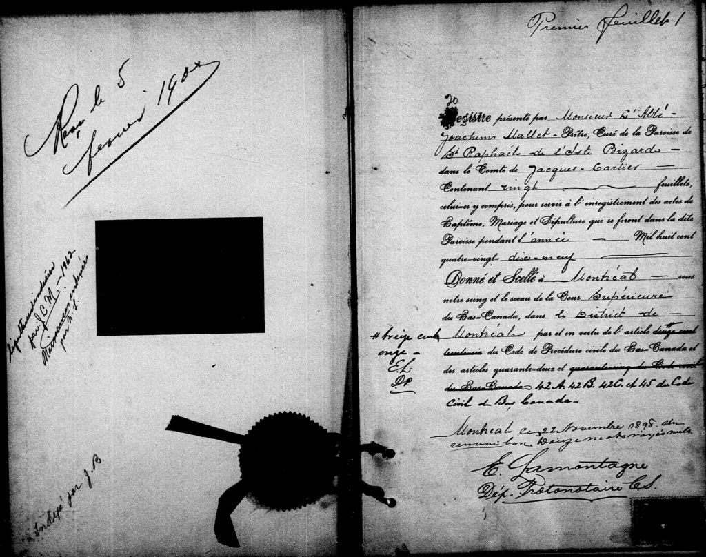 Saint-Raphaël-de-l'Île-Bizard, 1844-1922, Archives nationales à Montréal, Fonds Cour supérieure. District judiciaire de Montréal. État civil, (06M,CE601,S56).