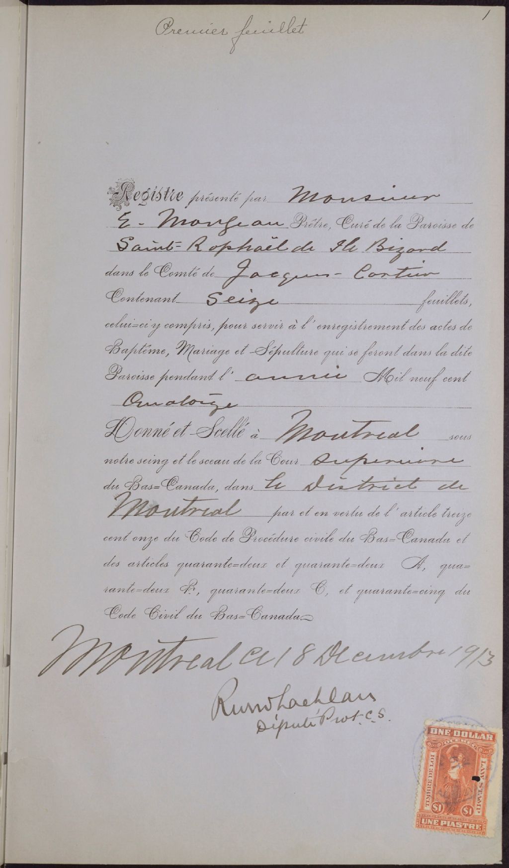 Saint-Raphaël-de-l'Île-Bizard, 1844-1922, Archives nationales à Montréal, Fonds Cour supérieure. District judiciaire de Montréal. État civil, (06M,CE601,S56).