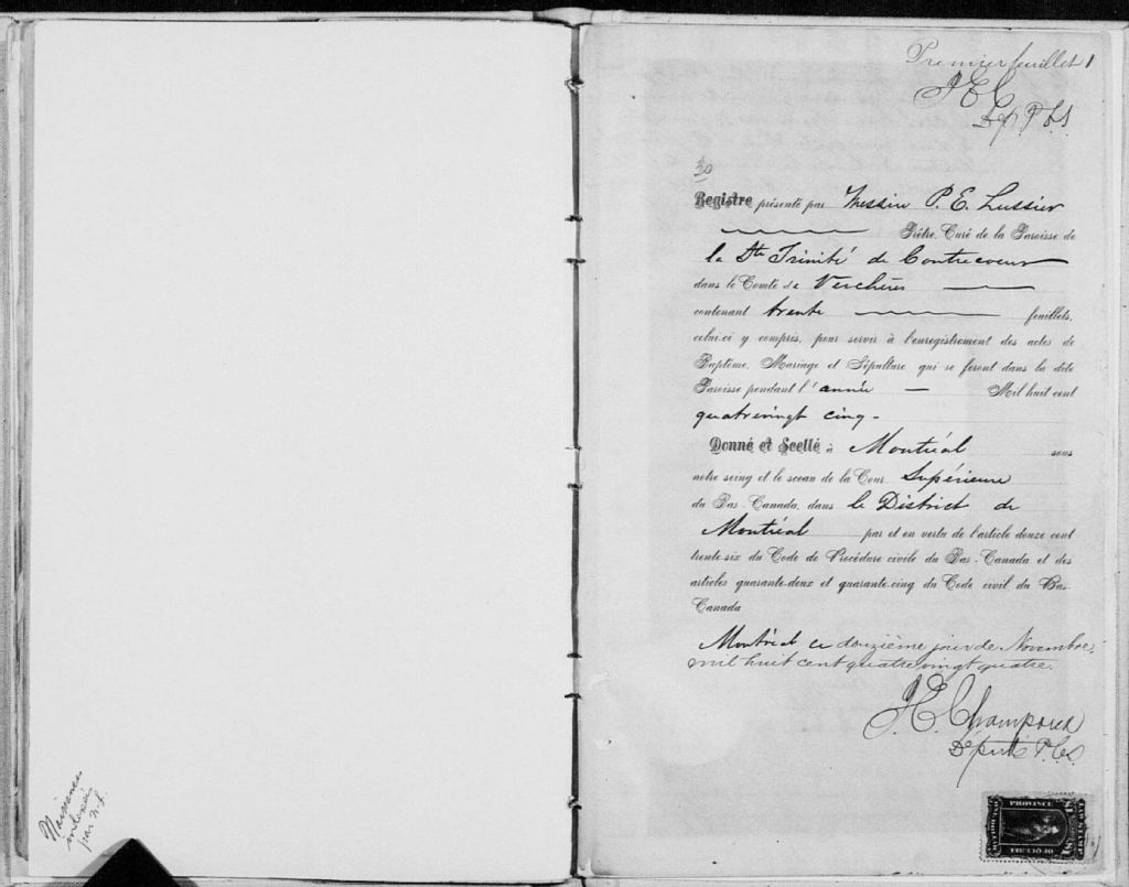 Sainte-Trinité-de-Contrecoeur, 1668-1922, Archives nationales à Montréal, Fonds Cour supérieure. District judiciaire de Montréal. État civil, (06M,CE601,S58).