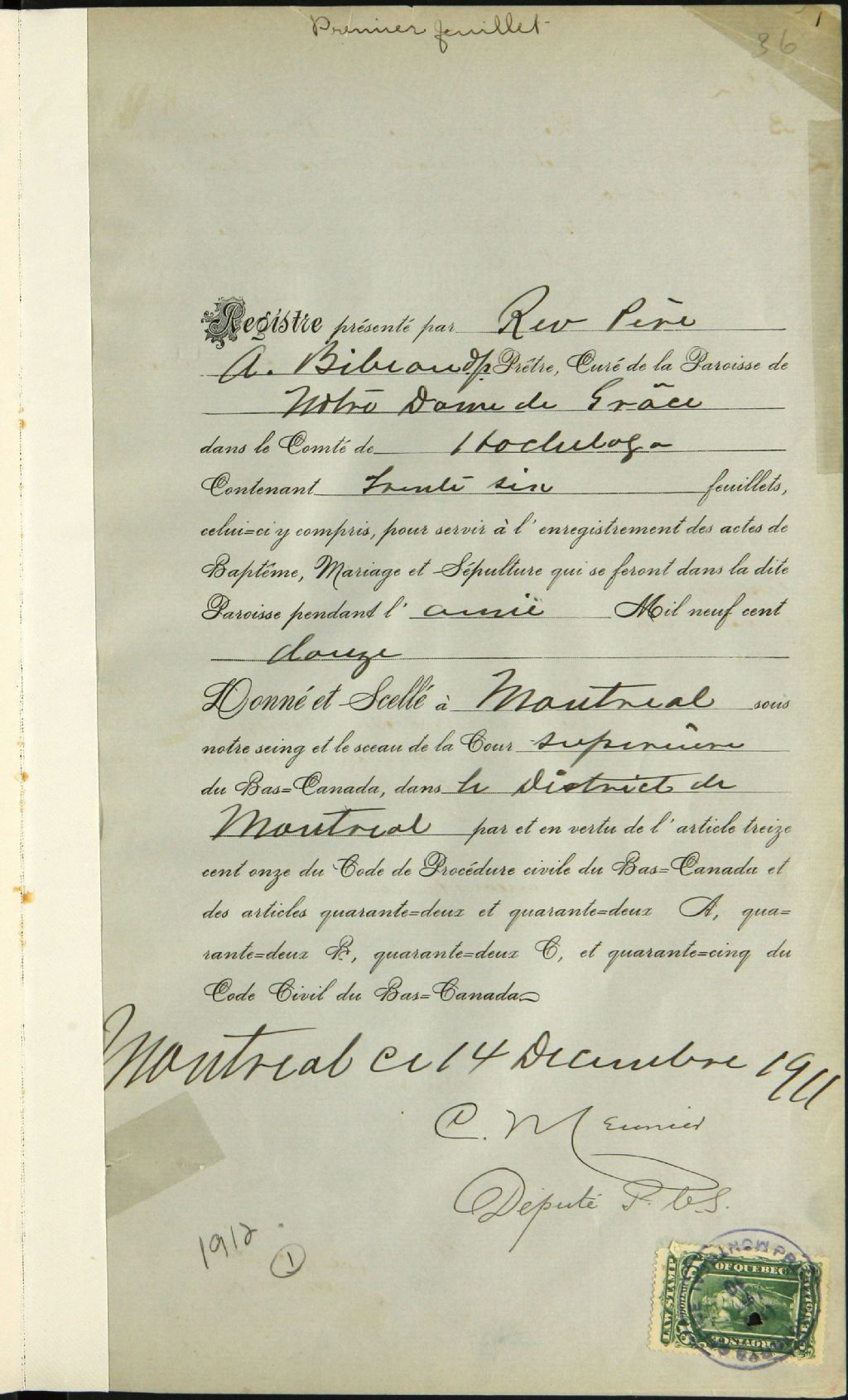 Notre-Dame-de-Grâce, 1856-1922, Archives nationales à Montréal, Fonds Cour supérieure. District judiciaire de Montréal. État civil, (06M,CE601,S6).