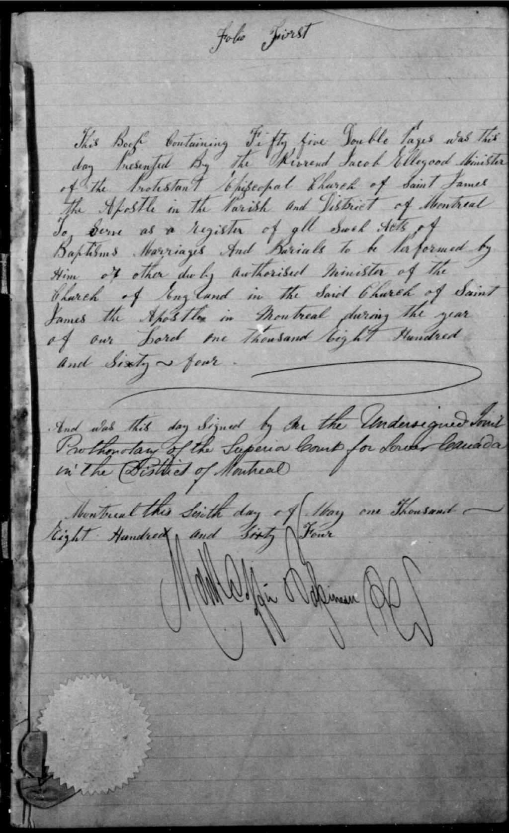 St. James the Apostle Anglican Church, 1864-1922, Archives nationales à Montréal, Fonds Cour supérieure. District judiciaire de Montréal. État civil, (06M,CE601,S69).