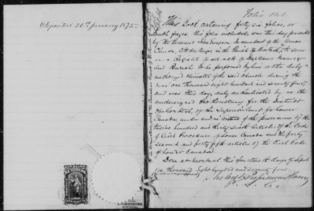 St. Mathias' Anglican Church, 1874-1922, Archives nationales à Montréal, Fonds Cour supérieure. District judiciaire de Montréal. État civil, (06M,CE601,S77).