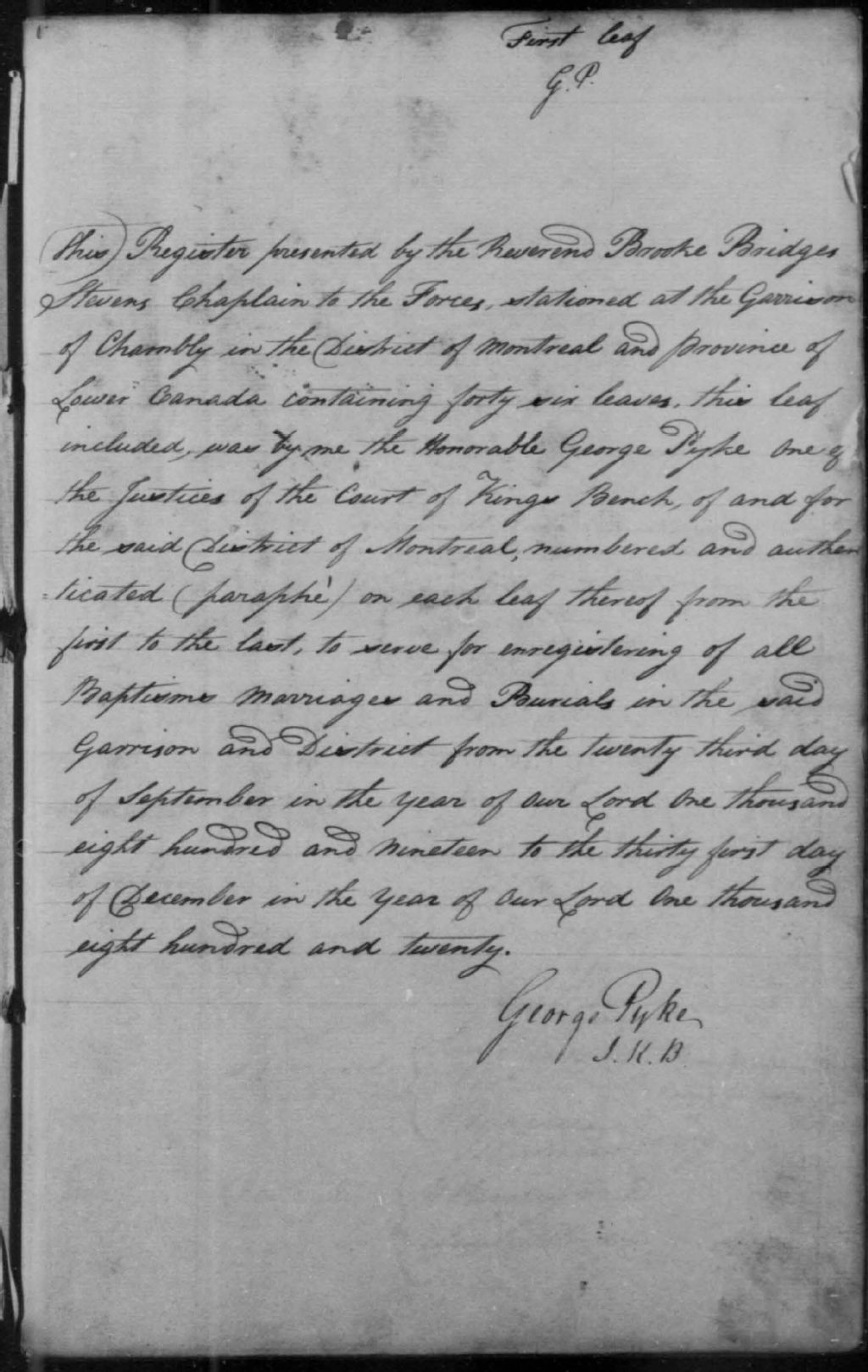 St. Stephen's Anglican Church of Chambly, 1819-1922, Archives nationales à Montréal, Fonds Cour supérieure. District judiciaire de Montréal. État civil, (06M,CE601,S79).