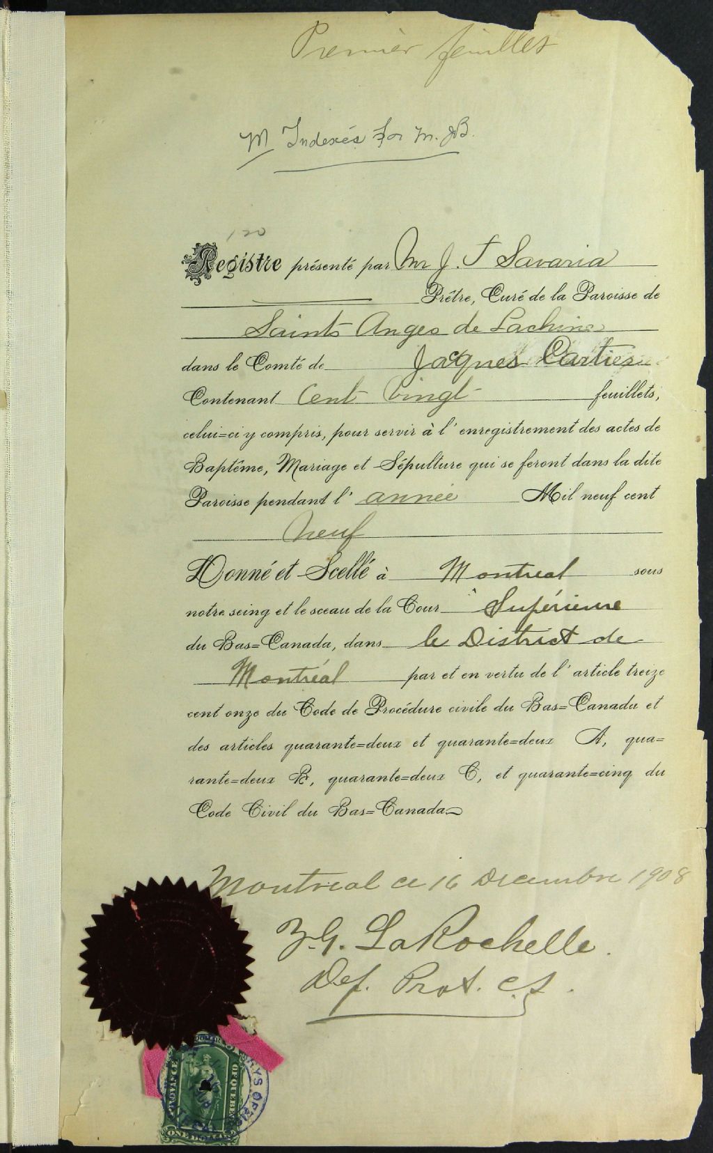 Saints-Anges-de-Lachine, 1676-1922, Archives nationales à Montréal, Fonds Cour supérieure. District judiciaire de Montréal. État civil, (06M,CE601,S8).
