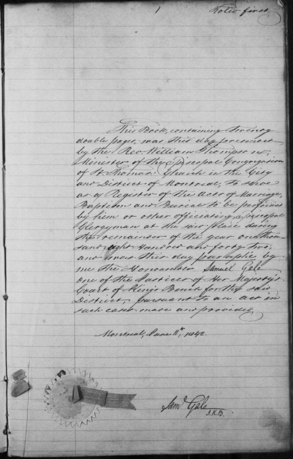 St. Thomas' Anglican Church, 1842-1922, Archives nationales à Montréal, Fonds Cour supérieure. District judiciaire de Montréal. État civil, (06M,CE601,S82).