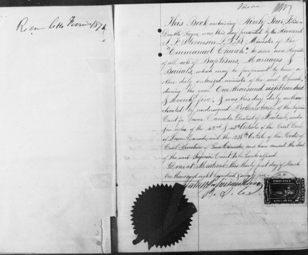 Emmanuel Congregational Church, 1875-1922, Archives nationales à Montréal, Fonds Cour supérieure. District judiciaire de Montréal. État civil, (06M,CE601,S91).