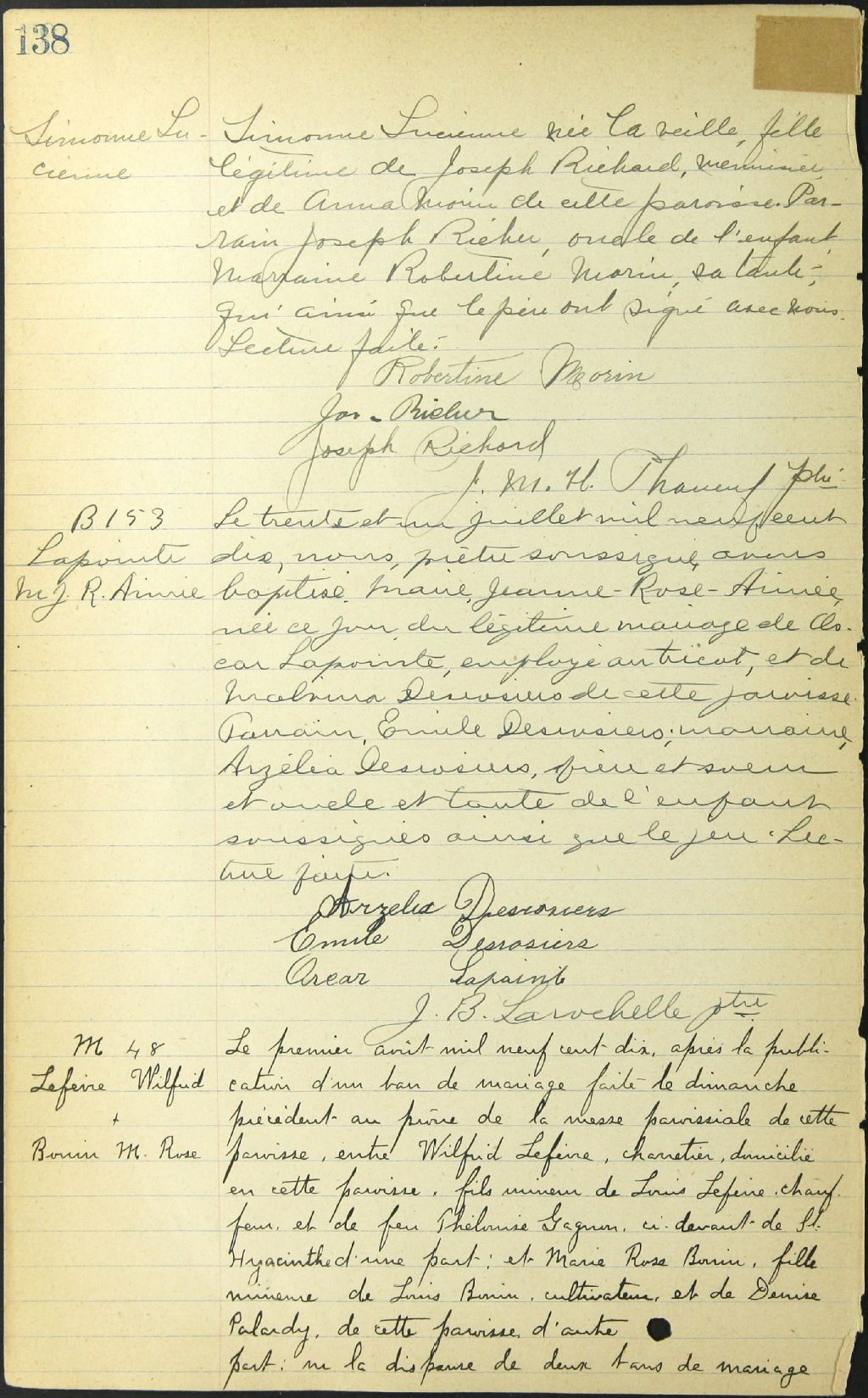 Saint-Hyacinthe-le-Confesseur, 1854-1921, Archives nationales à Montréal, Fonds Cour supérieure. District judiciaire de Saint-Hyacinthe. État civil, (06M,CE602,S1).
