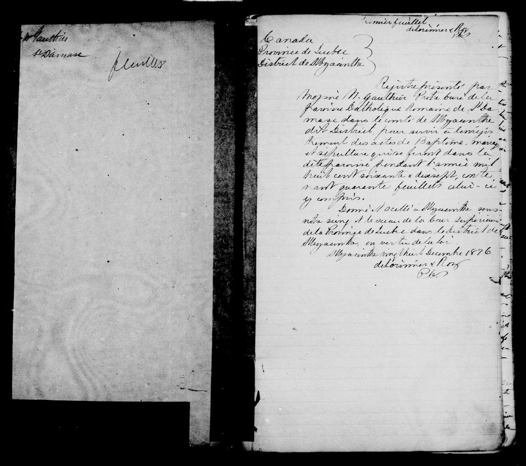 Saint-Damase, 1823-1921, Archives nationales à Montréal, Fonds Cour supérieure. District judiciaire de Saint-Hyacinthe. État civil, (06M,CE602,S11).