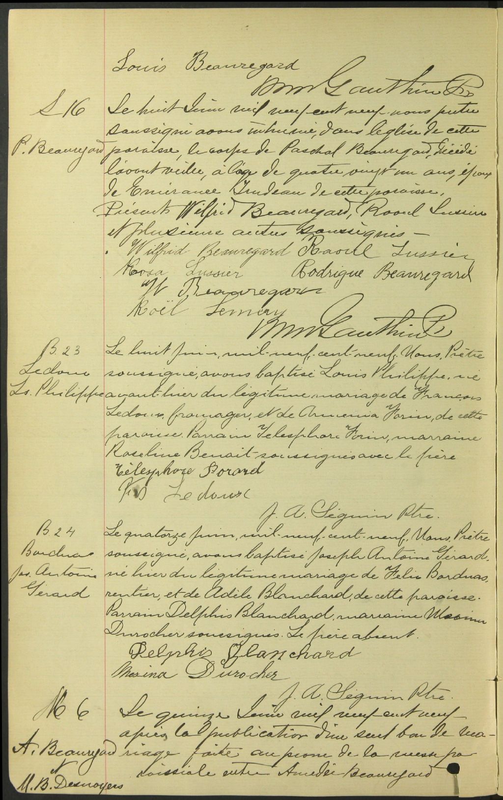 Saint-Damase, 1823-1921, Archives nationales à Montréal, Fonds Cour supérieure. District judiciaire de Saint-Hyacinthe. État civil, (06M,CE602,S11).