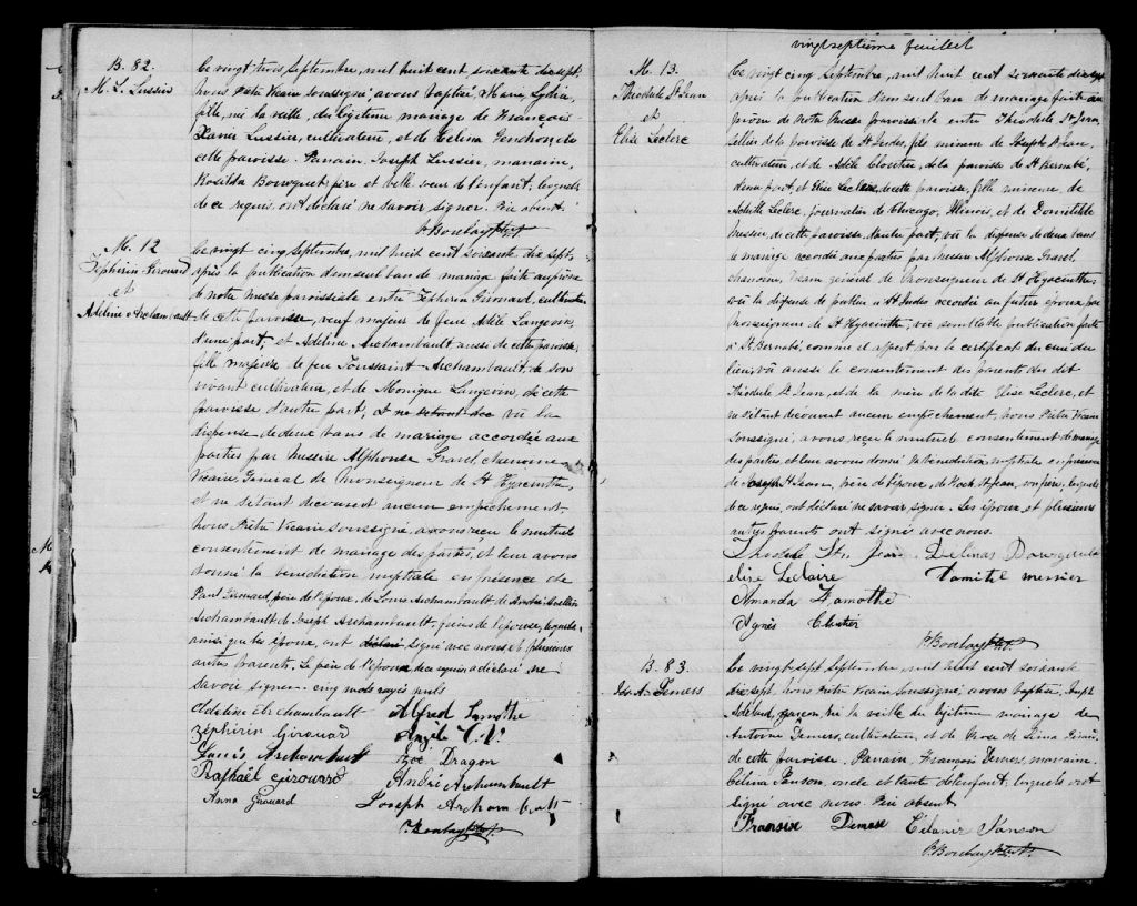 Saint-Denis-de-la-Rivière-Chambly, 1754-1921, Archives nationales à Montréal, Fonds Cour supérieure. District judiciaire de Saint-Hyacinthe. État civil, (06M,CE602,S12).