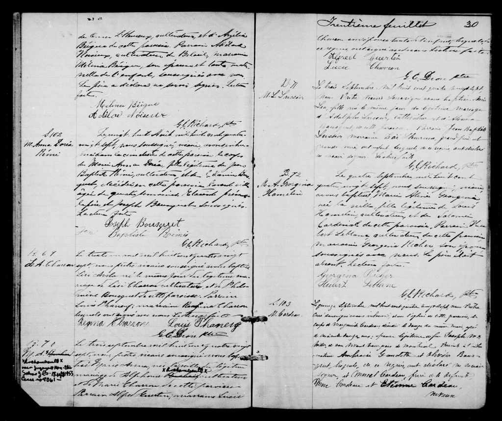 Saint-Denis-de-la-Rivière-Chambly, 1754-1921, Archives nationales à Montréal, Fonds Cour supérieure. District judiciaire de Saint-Hyacinthe. État civil, (06M,CE602,S12).