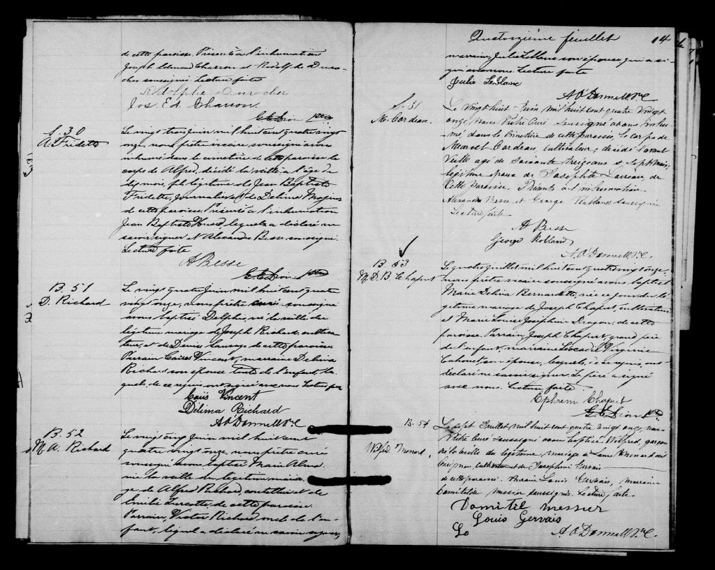Saint-Denis-de-la-Rivière-Chambly, 1754-1921, Archives nationales à Montréal, Fonds Cour supérieure. District judiciaire de Saint-Hyacinthe. État civil, (06M,CE602,S12).