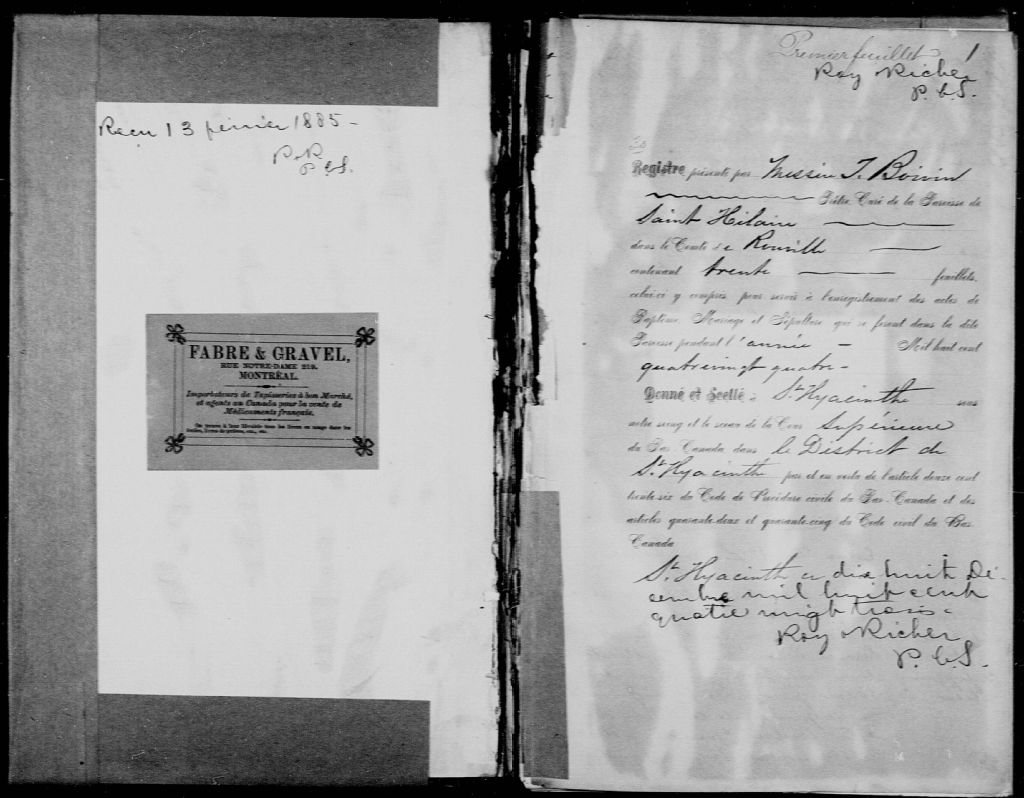 Saint-Hilaire, 1799-1921, Archives nationales à Montréal, Fonds Cour supérieure. District judiciaire de Saint-Hyacinthe. État civil, (06M,CE602,S16).