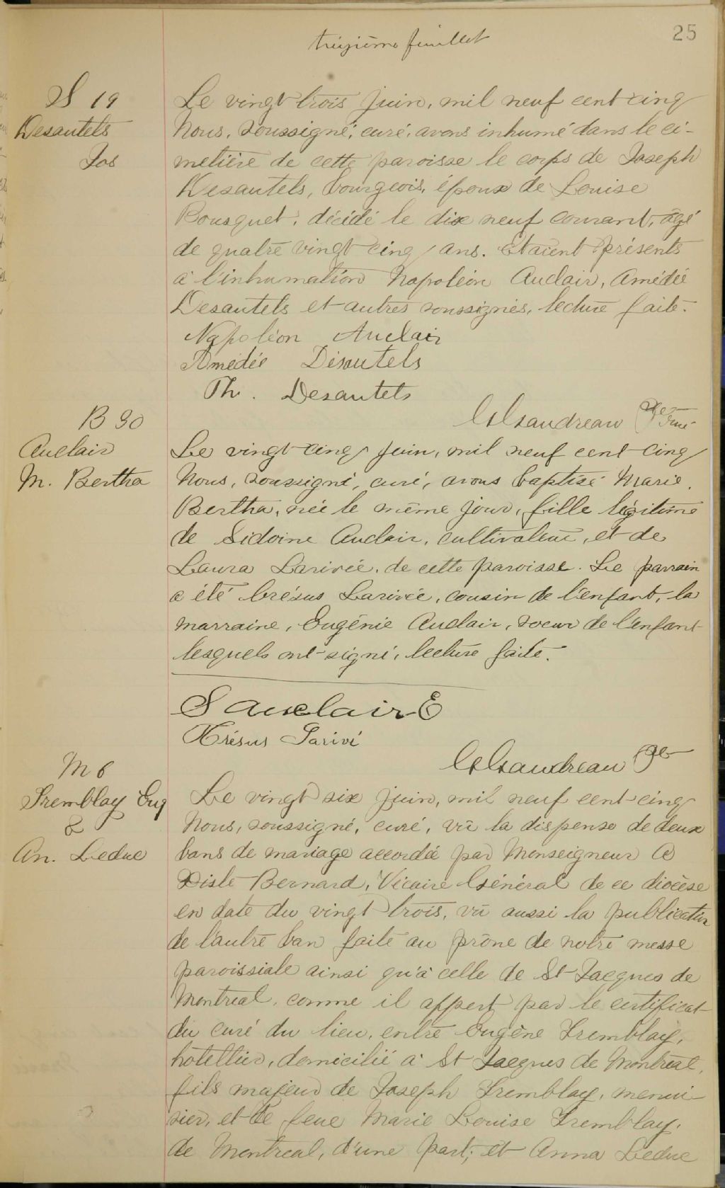 Saint-Hilaire, 1799-1921, Archives nationales à Montréal, Fonds Cour supérieure. District judiciaire de Saint-Hyacinthe. État civil, (06M,CE602,S16).