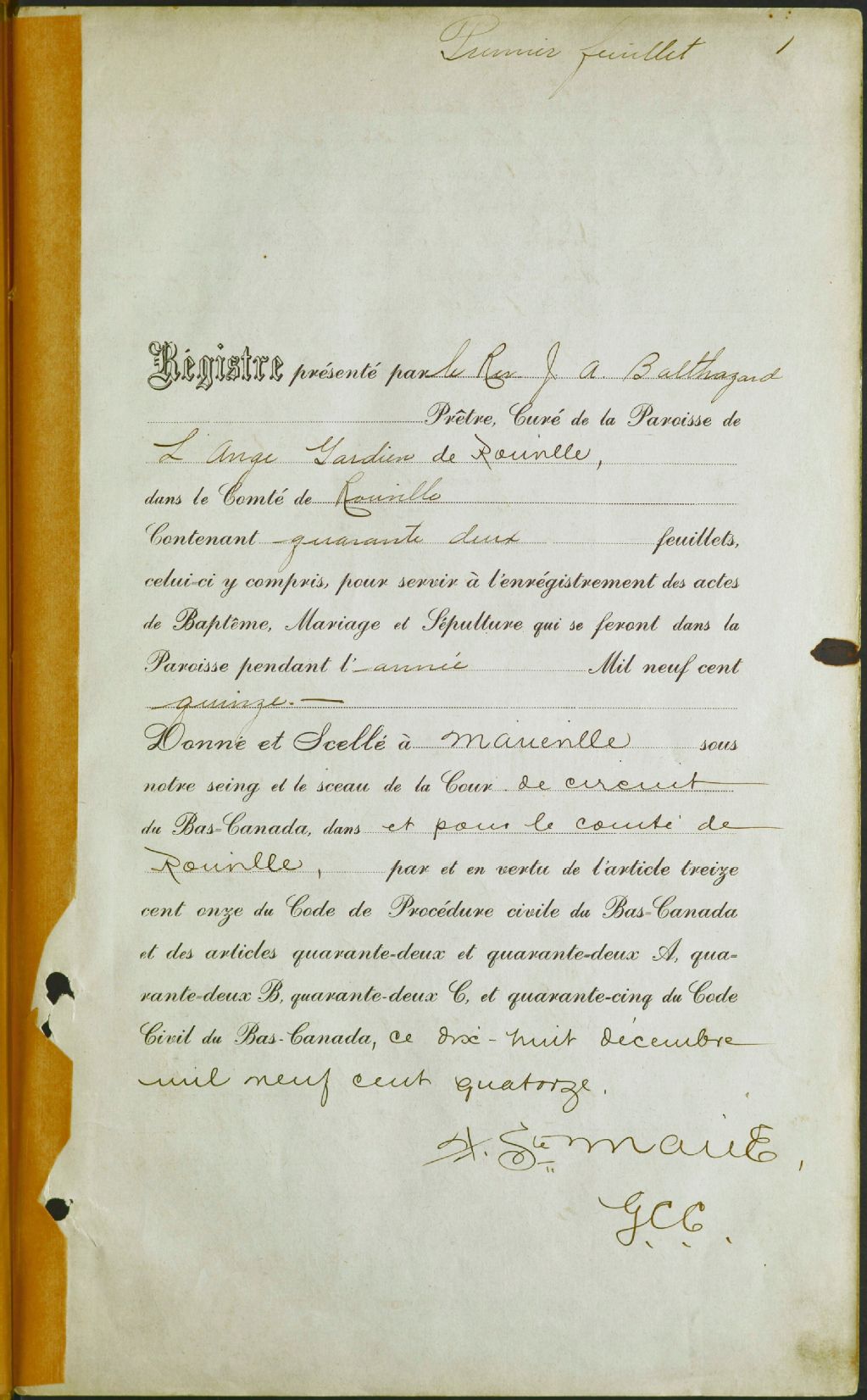 Saint-Ange-Gardien, 1857-1921, Archives nationales à Montréal, Fonds Cour supérieure. District judiciaire de Saint-Hyacinthe. État civil, (06M,CE602,S2).